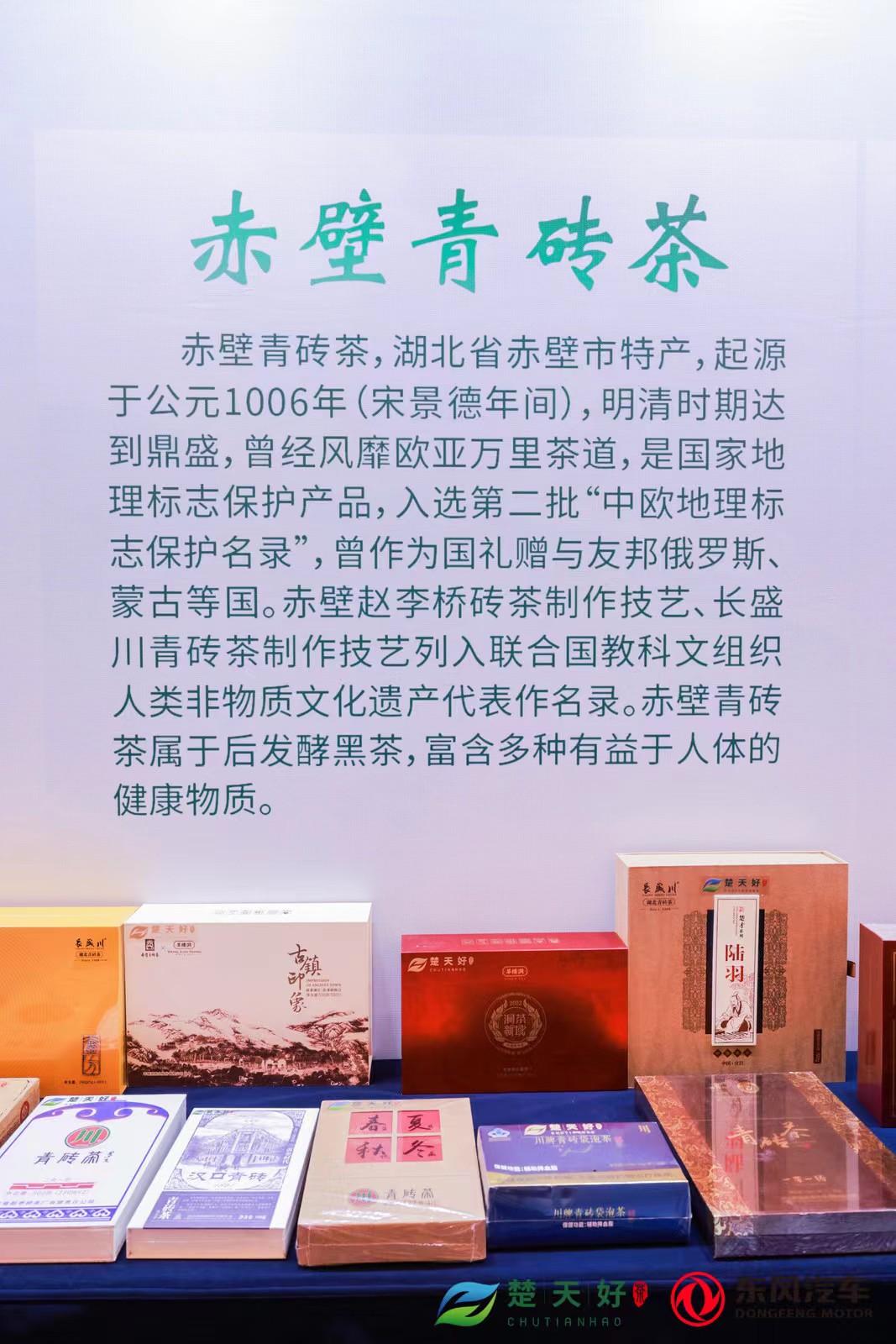 4月18日,以“文明交流互鉴 城市合作共赢”为主题的第九届中蒙俄万里茶道城市合作大会在湖北省汉川市举行,赤壁青砖茶作为湖北省级重点首推区域公用品牌亮相。
